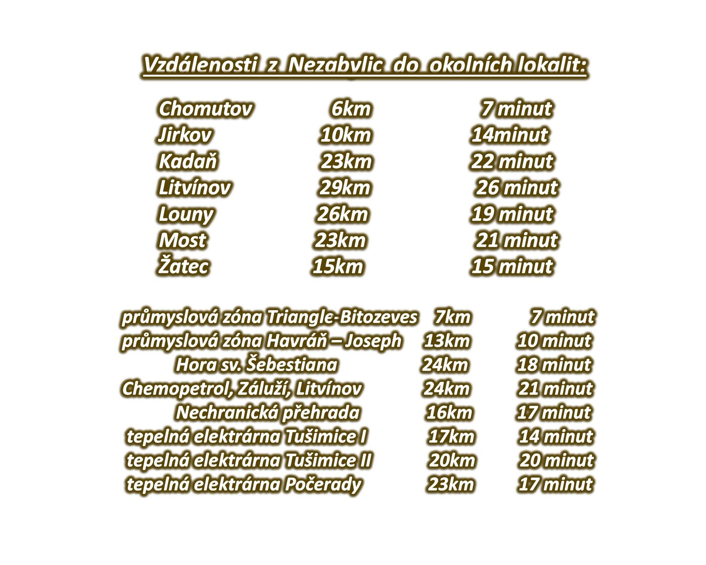 vzdálenosti z Nezabylic do: